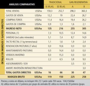 El análisis es estático, pero si se incluyeran los riesgos de sequía o de relaciones de precios desfavorables, surgiría que además de ser más rentable, la ganadería regenerativa tiene mayor resiliencia.