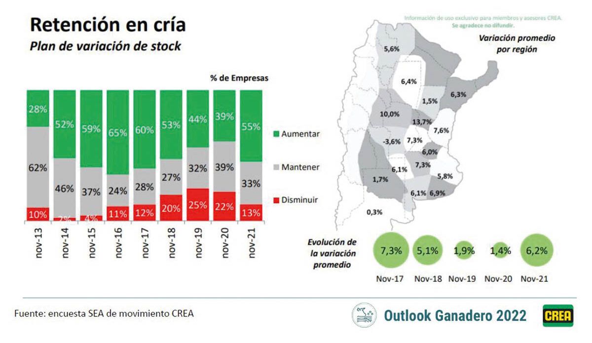 Tal es la conclusión de la nueva edición del Outlook Ganadero 2022 realizada recientemente por CREA con la finalidad de presentar las proyecciones de corto plazo acerca del contexto económico, climático-forrajero y agrícola, así como la situación de los mercados interno y externo para la actividad.
