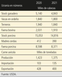 Estimar las consecuencias de la in- vasión rusa sobre las distintas produc- ciones pecuarias de Ucrania parece prematuro, pero lo cierto es que los efectos se sentirán por años sin descon- tar el desplome del consumo interno, a propósito de la crisis humanitaria que enfrenta la región.