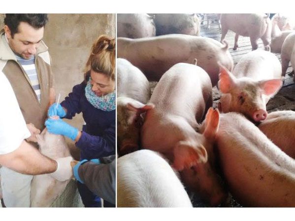 Los establecimientos sumaron una existencia total de 5450 cerdos (272 cerdos/granjas). Se muestrearon aleatoriamente el 10% de los animales entre 20 y 50 kg PV de cada uno de los establecimientos, obteniendo un total de 218 muestras.
